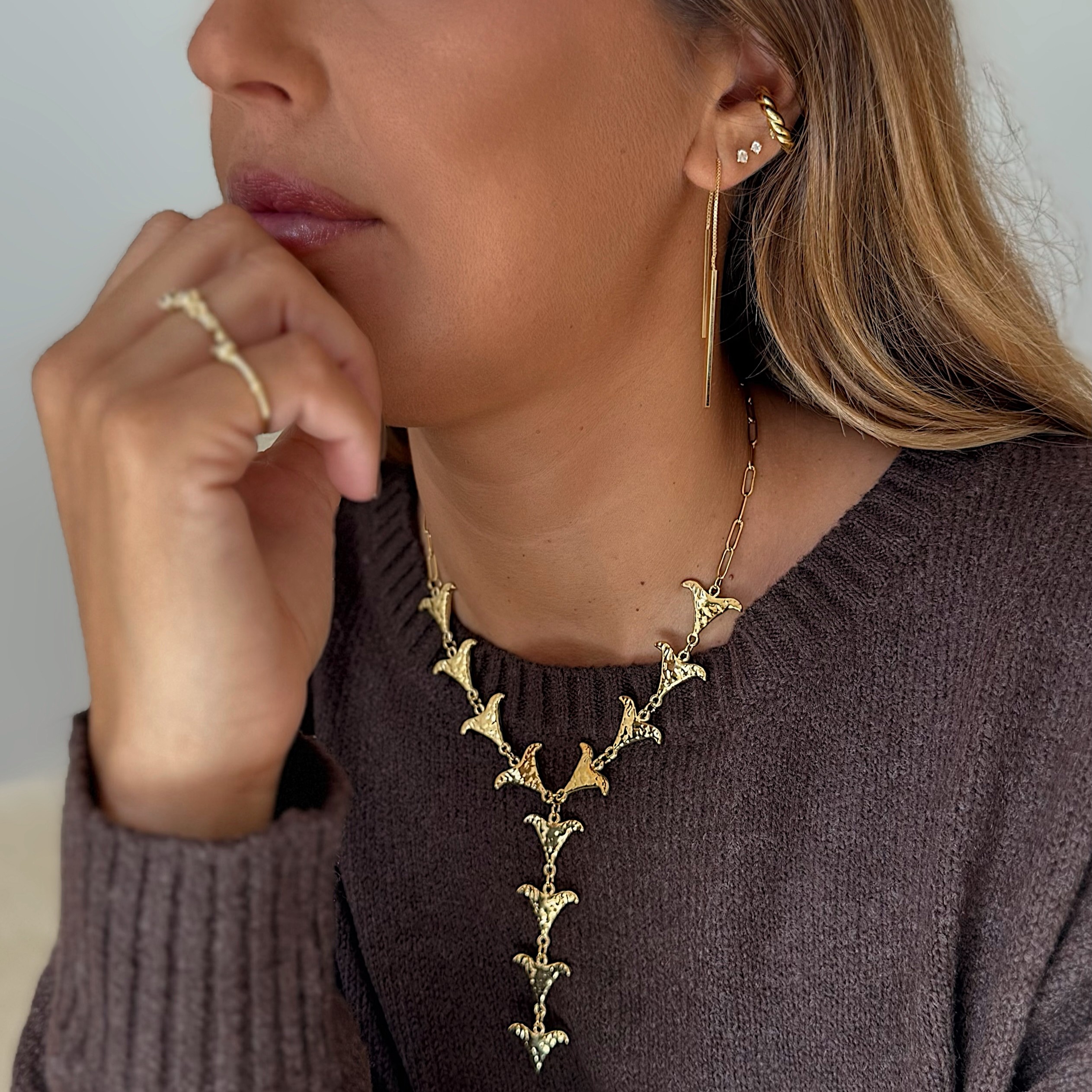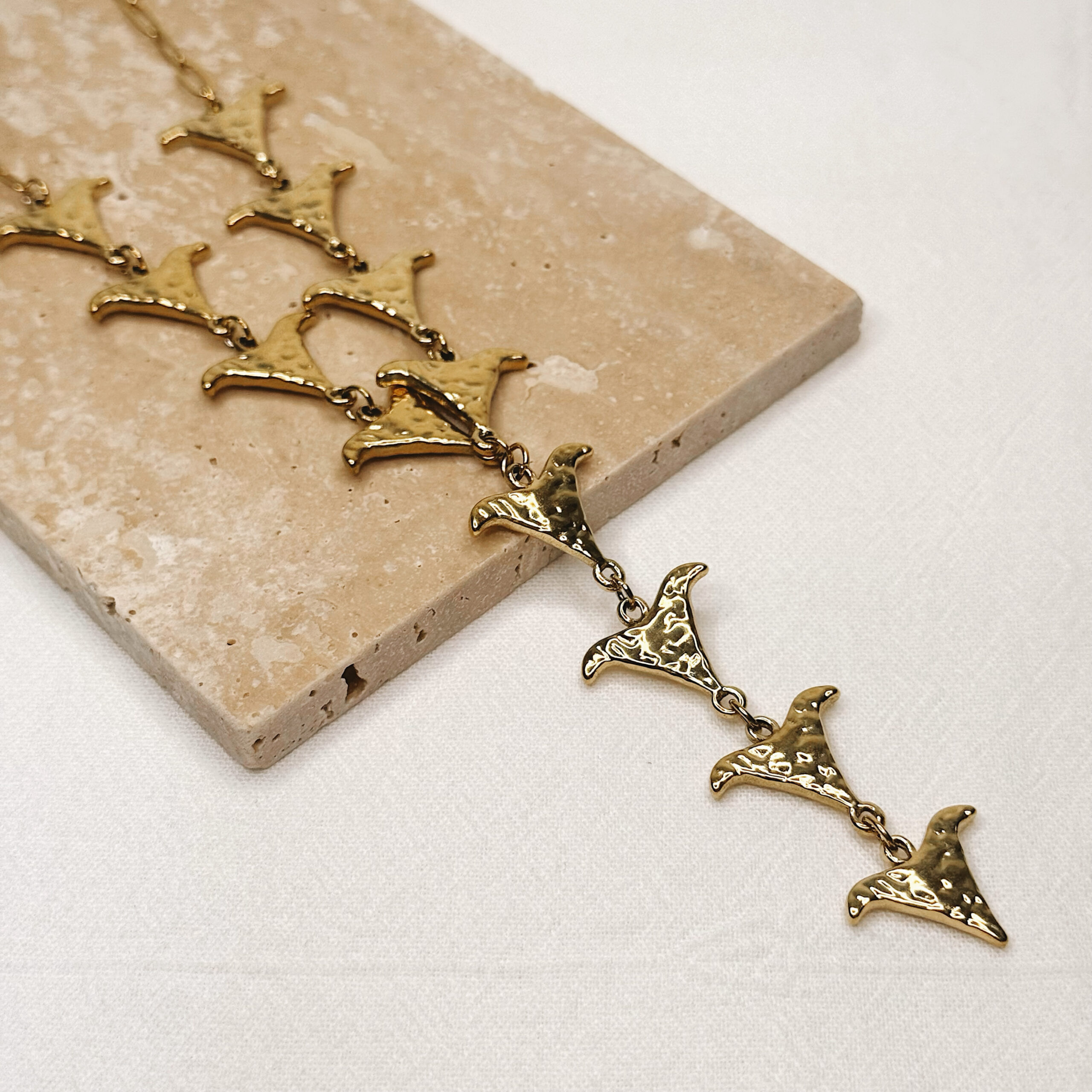 Collar en acero inoxidable dorado, elegante y resistente. Su fino diseño en cascada aporta un toque sofisticado y versátil, perfecto para cualquier look.