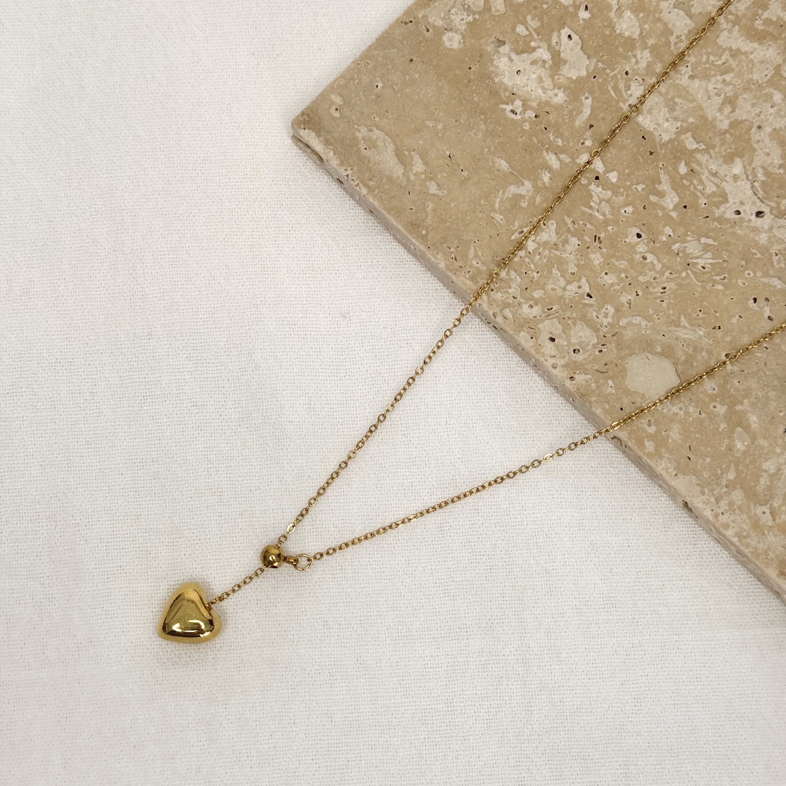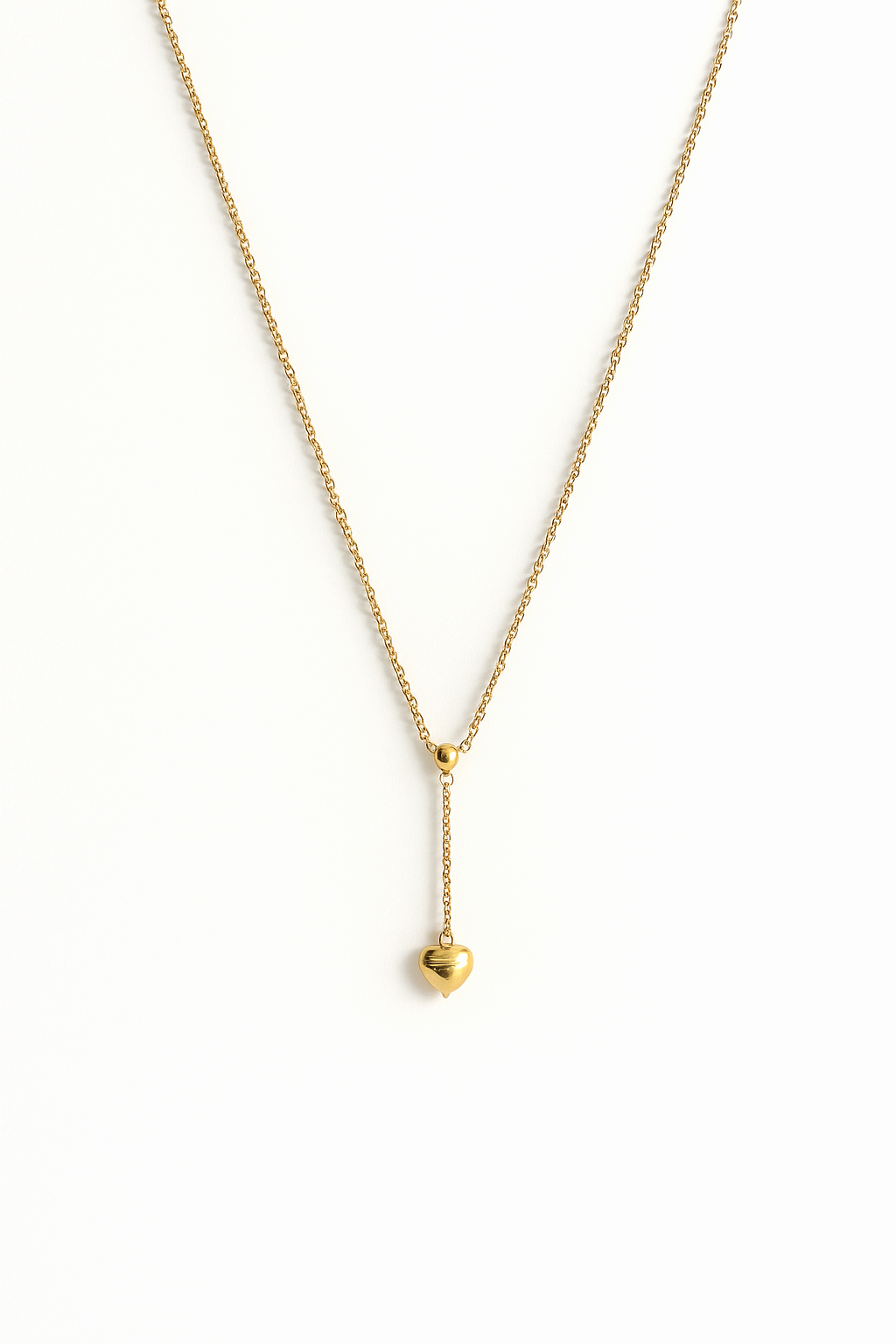Collar en acero inoxidable dorado, elegante y resistente. Su diseño delicado de cadena y charm en forma de corazón aporta un toque sofisticado y versátil, perfecto para cualquier look.